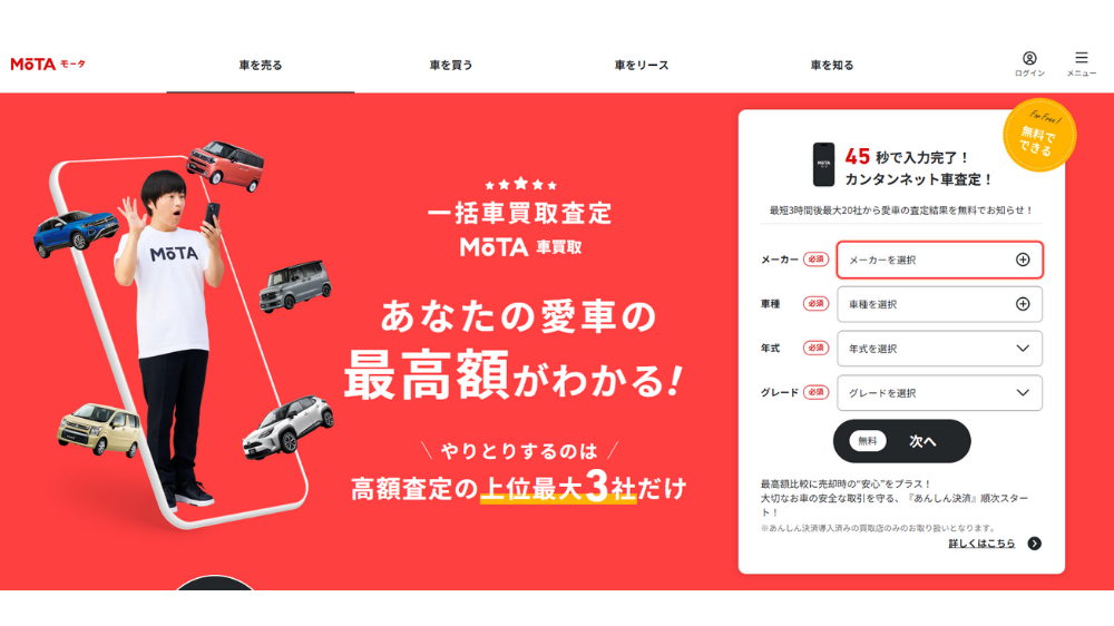 - 45秒の簡単入力で愛車の買取相場がわかる