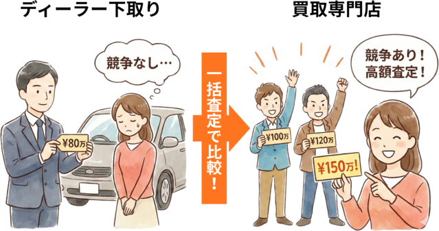 そんなあなたがやるべきことは一つ。 複数の買取業者の査定額を比較することです。
